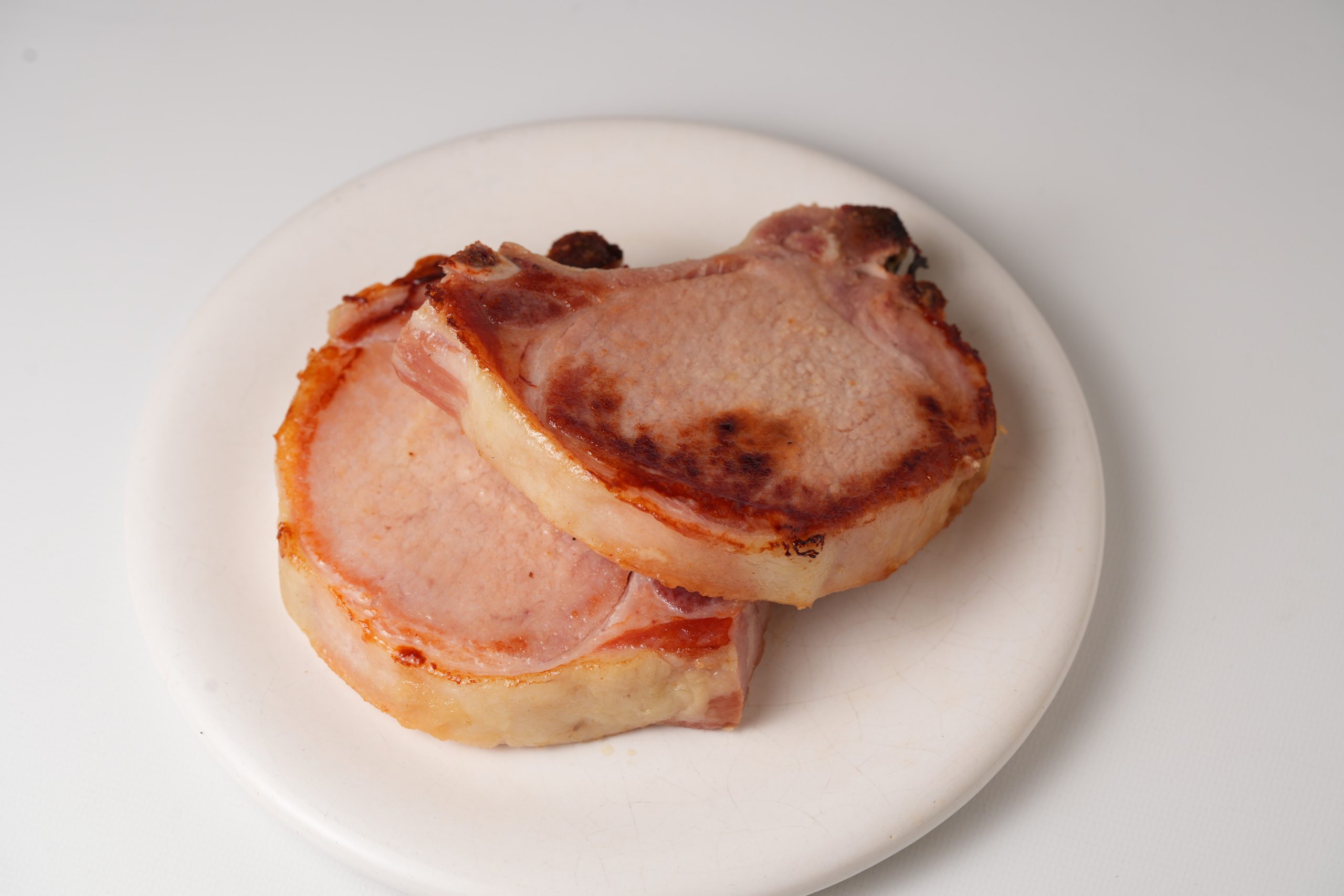 Las chuletas de cerdo ahumado fueron cocinadas en 12 horas de horno.